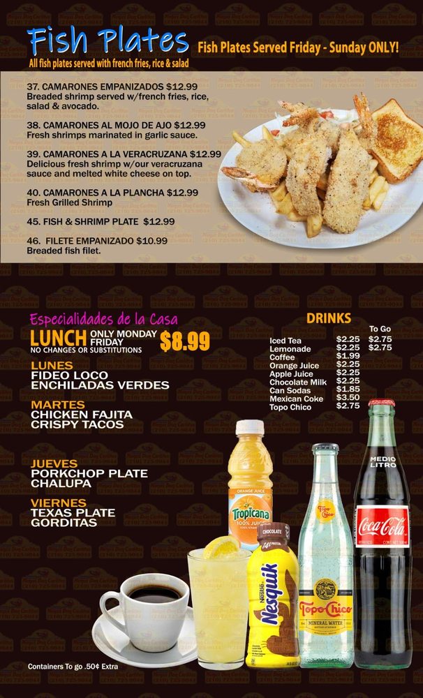 Served with rice & charro beans, guacamole & 2 tortillas, topped with white cheese.